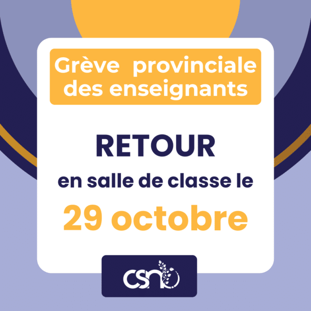 Retour en classe pour tous le mercredi 29 octobre – Nous sommes heureux de vous annoncer que les cours reprendront dans toutes les écoles du CSNO à partir du mercredi 29 octobre. Cette reprise marque une étape importante pour nos élèves, nos équipes scolaires et nos communautés, et nous sommes impatients de retrouver vos enfants dans un environnement d’apprentissage stimulant et bienveillant.