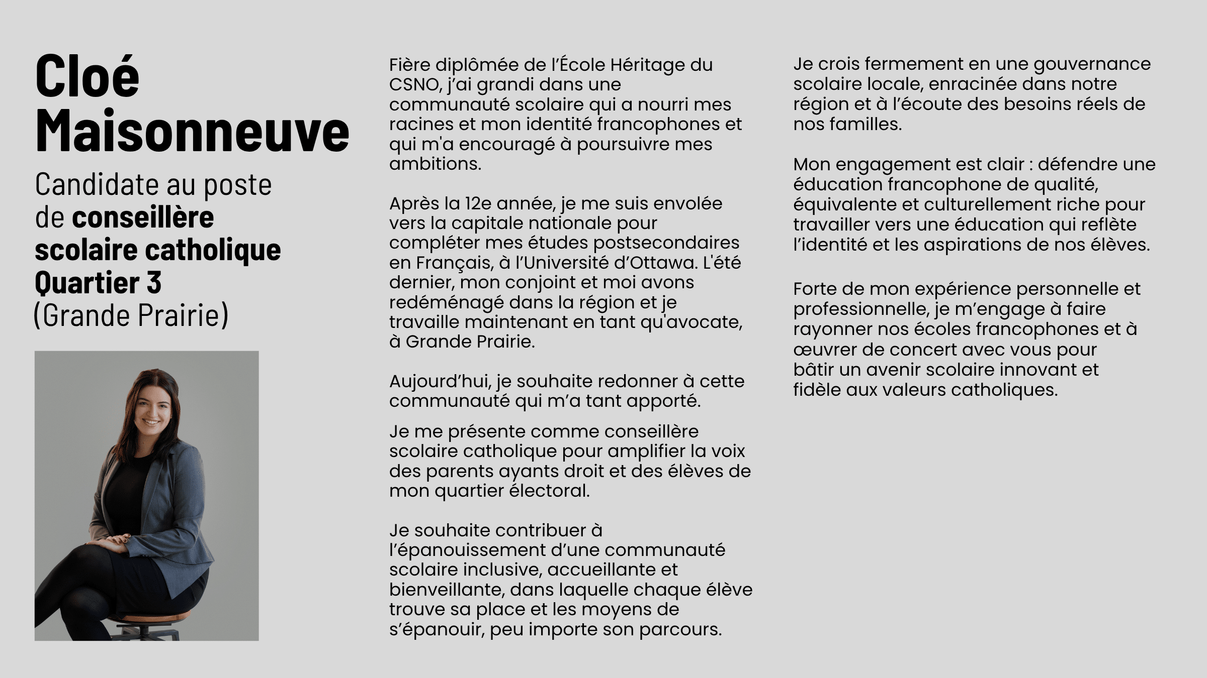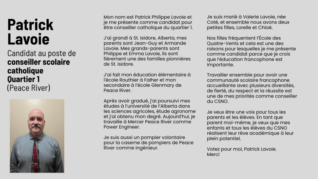 Afin de mieux connaître les personnes qui se présentent aux élections scolaires, le Conseil scolaire a invité chaque candidat ou candidate à partager un court profil.
