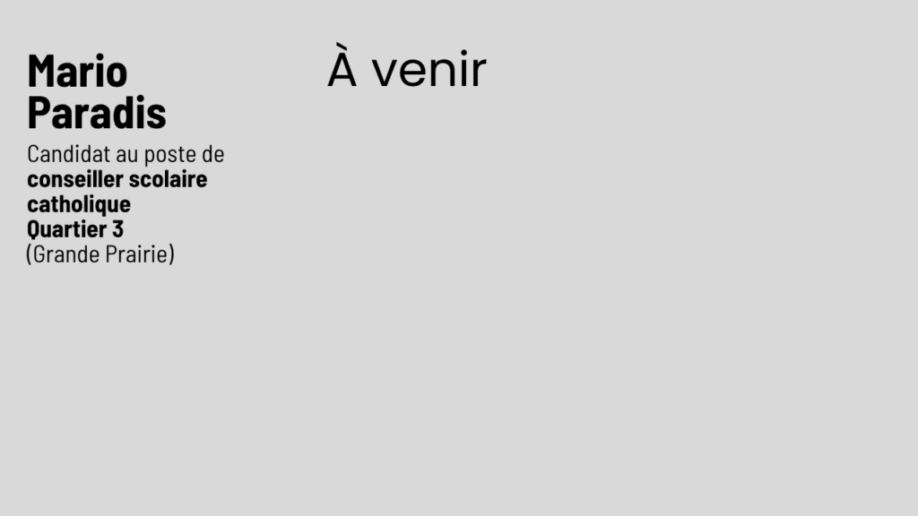 Mario Paradis | 9 septembre 2025 | Quartier 3 CATHOLIQUE (région Grande Prairie) |