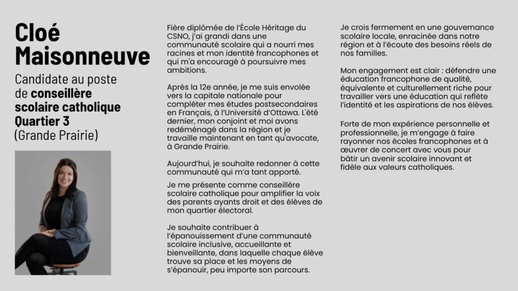 Cloé Maisonneuve | 29 aout 2025 | Quartier 3 CATHOLIQUE (région Grande Prairie) |