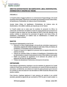 DA 190 HARCÈLEMENT, ABUS, DISCRIMINATION, INTIMIDATION ET VIOLENCE AU TRAVAIL