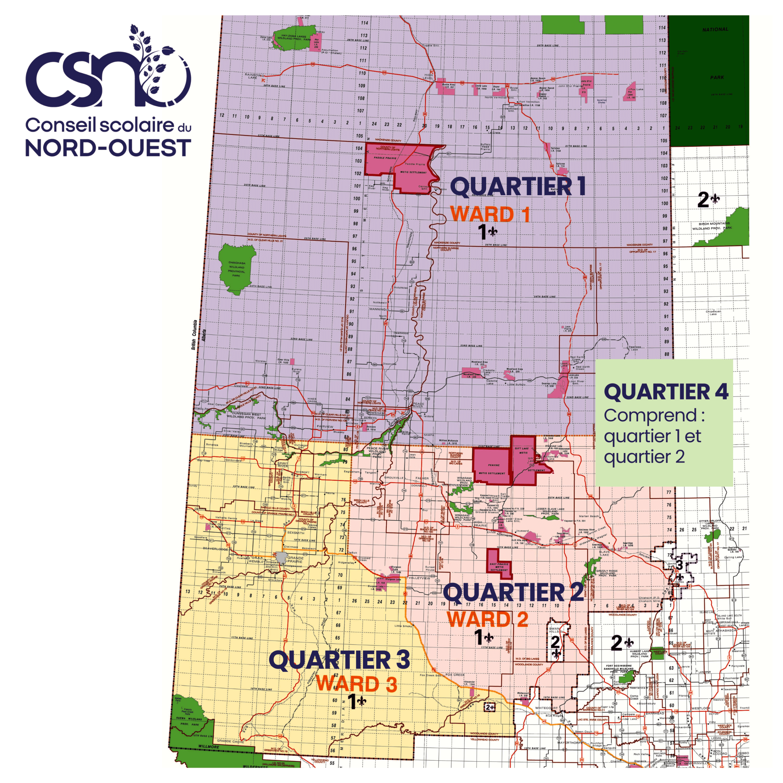 Pour le quartier 4 : Les candidats qui désirent se présenter dans le quartier 4 peuvent vivre dans le quartier 1 ou le quartier 2.