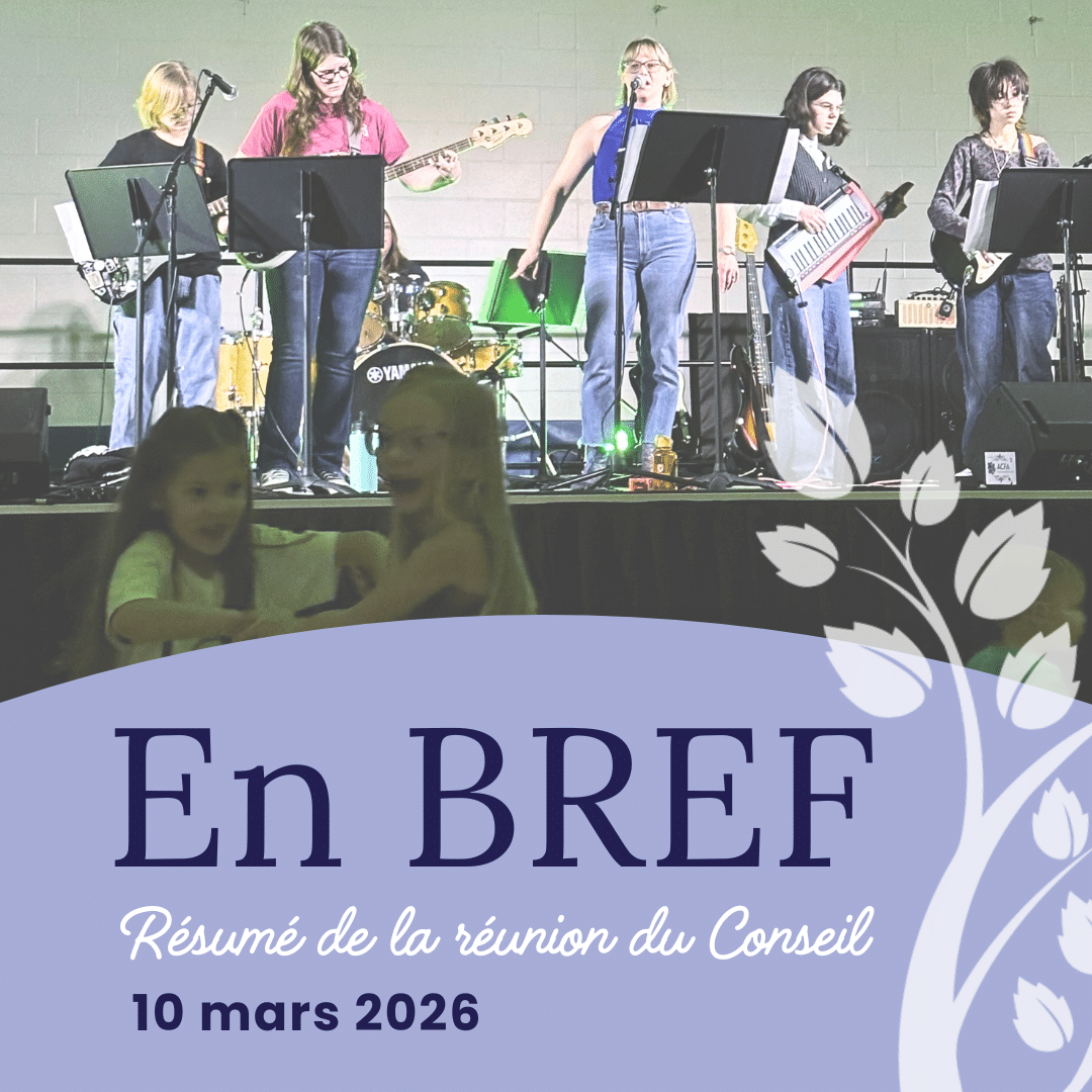 En BREF RÉUNION ORGANISATIONNELLE Nouveau conseil et élections À leur première réunion organisationnelle à la suite des élections scolaires, les conseillers ont été assermentés. Lors des élections, madame Anita Anctil a été élue à la présidence et monsieur Roger Tremblay […]