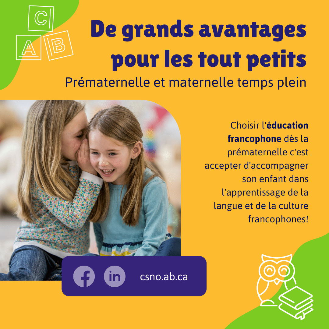 Le programme de la prématernelle répond à la mission du Conseil scolaire, et s’inspire des principes directeurs du « Programme de la prématernelle francophone en Alberta » élaboré par la FPFA (Fédération des parents francophones de l’Alberta) et respecte les exigences du Child Care Licensing Act du gouvernement albertain.
